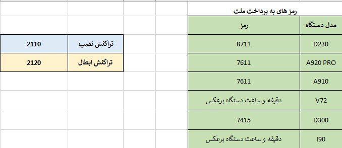 رمزهای پیکربندی دستگاه های به پرداخت ملت